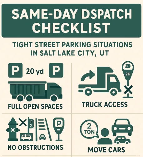 Same-day dispatch checklist for tight street parking situations in Salt Lake City, UT