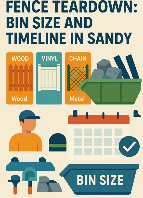 Fence Teardown: Bin Size and Timeline in Sandy Taking down an old fence in Sandy means two things matter most: