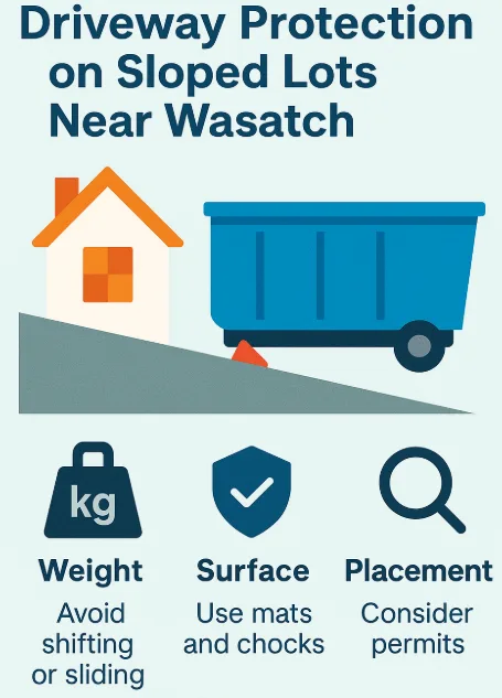 Driveway Protection on Sloped Lots Near Wasatch Homes near the Wasatch often sit on steep driveways. Heavy roll-off dumpsters can