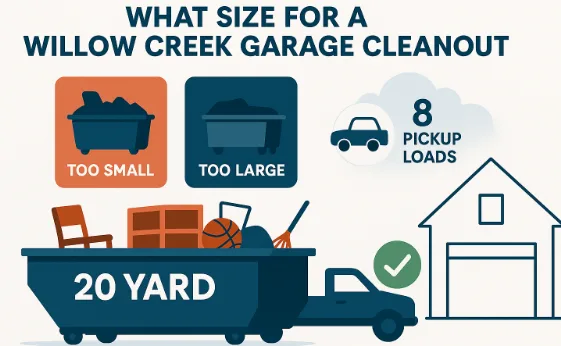 What size for a Willow Creek garage cleanout Picking the correct size for your garage cleanout in Willow Creek saves